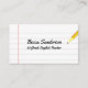 Diese Visitenkarte zum Thema Bildung sieht aus wie ein Stück Notizbuch, auf dem Ihr Name und Ihre Informationen mit einem gelben Stift aus der Schule ordentlich geschrieben wurden. Diese Visitenkarte eignet sich hervorragend für Pädagogen, darunter Lehrer und Tutoren. Diese Visitenkarte ist vollständig anpassbar, sodass es einfach ist, Ihre Informationen auf der Vorderseite mit detaillierteren Kontaktinformationen auf der Rückseite hinzuzufügen.