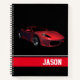Dieses Notizbuch wird regelmäßig mit Uni-Regelseiten mit einem Foto-Druck für Sportwagen angezeigt.