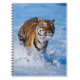 Notebook mit einem Foto-Druck eines schönen exotischen Tigers, der im Ozean läuft. Passen Sie dieses Objekt an oder kaufen Sie, wie es ist. Bild