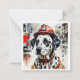 Dieser Kommentar zeigt die Aquarellbilder eines traditionellen Dalmatiner Dog Mascot, der einen Feuerhelm trägt. Der Text liest Glückwünsche! Für den geschlossen Feuerwehrmann oder EMT in deinem Leben. Auch ein Hundebesitzer oder Trainer-Maskottschulung abgeschlossen