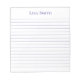 Dieses Notizblock wird mit einem Beispiel für einen individuelle Name angezeigt. Passen Sie dieses Element an und ändern Sie den Beispielnamen in Ihren Namen. Lila Text und Zeilenfarbe sind Lila.
