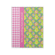 Ein hübsches Notepad oder Jotter to Personalize, mit einem Muster aus rosa, gelben und blauen Primrosen, verbunden mit passendem rosa Band, wo Sie Text hinzufügen können, wenn Sie möchten; Teil der Posh & Painterly 'Primroses' Kollektion.