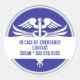 Höhepunktgesundheitswesenfragen und Angehörigekontaktdetails mit diesem modernen Caduceus auf einem blauen Kreis entwerfen.