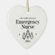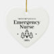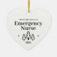 Erste Weihnachten als Nothelferin Herzschmuck für einen neuen Job in der Pflege im ER. Elegante Porzellan Keramik Urlaubsornamente in Weiß mit schwarzer Schrift. Mit Weihnachtsbäumen und Sternen.