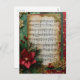 Eine geschichtete Karte mit strukturiertem rotem Papier, goldenen Akzenten, grünen Blättern und Noten. Verziert mit goldenen Schneeflocken, roten Beeren, Kiefernästen und einem roten Bogen mit goldenen Glitzer-Ecken, der ein festliches Weihnachtsthema schafft.