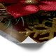 Eine geschichtete Karte mit strukturiertem rotem Papier, goldenen Akzenten, grünen Blättern und Noten. Verziert mit goldenen Schneeflocken, roten Beeren, Kiefernästen und einem roten Bogen mit goldenen Glitzer-Ecken, der ein festliches Weihnachtsthema schafft.