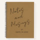 Goldenes Notizbuch, mit feinen schwarzen Skripttypografie "Notes and Musings", um Ihre kreativen Ideen und Gedanken inspirieren, personalisiert mit Ihrem Namen auf der Vorderseite und Ihr Monogramm mit Namen auf der Rückseite. Fügen Sie Ihre eigenen Informationen hinzu, indem Sie den Link "Diese Vorlage personalisieren" befolgen.