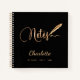 Ein schicker schwarzer Hintergrund. Mit dem Text: Notizen und mit einem Federstift dekoriert. Personalisieren und fügen Sie einen Namen und Text (oder löschen) hinzu