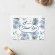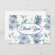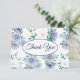 Diese flache Dankeschön-Karte wird in Weiß mit einem schönen Blumendruck in Blau gezeigt. Text Farbe Navy Umschläge enthalten Anpassen Sie diese Karte oder kaufen, wie es ist.
