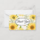 Diese flache Dankeschön-Karte wird in Weiß mit einem schönen gelben Sonnenblumendruck gezeigt. Umschläge im Text Farbe Schwarz Passen Sie diese Karte an oder kaufen Sie, wie es ist. Börsenbild freepik.com