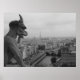 Einer der ikonischen Gargostile von Notre Dame. Er blickt auf die Stadt Paris, den Eiffelturm im Hintergrund.