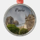 Das ist die Fassade von Notre Dame de Paris, einer gotischen Kathedrale in Paris, Frankreich. Die wunderschöne Architektur dieser mittelalterlichen Kirche und die Fassade der Glasfenster sind unter einem stürmischen Himmel mit Wolken zu sehen. Notre Dame ist auch bekannt als Unsere Dame von Paris.