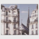 Ein typisches Pariser Gebäude, eine französische Architektur und das Notre Dame auf der linken Seite es.