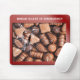 Ein lustiger Blick auf die stressigen Zeiten, in denen nur Schokolade helfen wird. Schokolade in einem Glaskasten mit den Worten BREAK GLASS IN NOTFALL oben. Aber was das ist, sieht so aus, als ob jemand schon versucht hat einzubrechen. Das Glas ist gebrochen. Ein tolles Mousepad für das Büro.