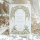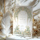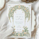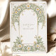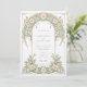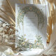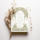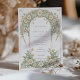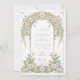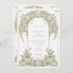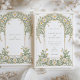 Diese elegante Hochzeitseinladung besticht durch ein klassisches Jugendstil-Design, das mit schönen Elfenbein- und Grüntönen geschmückt ist. Die Vorderseite der Karte zeigt komplexe Blumenmuster, die mit anmutigen Blättern in sanften Pastelltönen von Elfenbein und Grün verwoben sind. Das detaillierte Design schafft eine zeitlose und romantische Atmosphäre, perfekt für eine anspruchsvolle Hochzeitsfeier. Die Rückseite der Einladung setzt das Blumenthema fort und hebt den Hochzeitstag mit einer raffinierten Anordnung von Gängen und Blätter hervor. Ideal für Paare, die eine Mischung aus traditioneller Eleganz und künstlerischem Charme suchen, verkörpert diese Einladung das Wesen von Romantik und Natur.