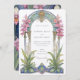 Diese luxuriöse Hochzeitseinladung vereint das Wesen des Jugendstils mit seinem aufwändigen Blumendesign und einem atemberaubenden Bogen mit eleganten Orchideen. Auf der Vorderseite der Einladung werden wunderschön detaillierte Orchideen in warmen Pfirsich-, Lavendel- und Rosa-Tönen präsentiert, alles Set vor einem klassisch-weißen Hintergrund. Die Einladung wird gerahmt durch fließende, Bio Linien und ein reichhaltiges botanisches Motiv, das Eleganz und Anmut ausstrahlt. Die Rückseite der Einladung setzt das Blumenmotiv fort, mit einem lebendigen, orchitischen Set, das sich in einem tiefen, mitternachtsblauen Hintergrund widerspiegelt und einen markanten Kontrast schafft, der zeitlos und modern zugleich ist. Ideal für Paare, die eine raffinierte und elegante Einladung suchen, die auf eine Liebe von Natur und klassischem Design verweist.
