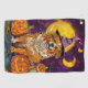 Mit diesem bezaubernden Design, das einen niedlichen Hund in einer Hexe mit geschnitzten Kürbissen schmückt, können Sie das Halloween-Ambiente genießen. Ideal, um Ihren Festlichkeiten eine Touch von spötlichem Charme zu verleihen.