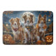 Entfesseln Sie den unheimlichen Geist mit diesem unheimlichen Halloween-Design, das eine Hundepackung unter einem dunklen, mondbeleuchteten Himmel bietet, umgeben von fliegenden Fledermäusen und glühenden Kürbissen. Ideal für diejenigen, die mit ihren wütenden Freunden eine Touch voller Furcht Liebe haben!