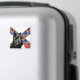 Grafische Kunstdarstellung eines schottischen Terrier-Hundes vor dem Hintergrund einer stilisierten Nova Scotia-Flagge