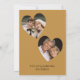 Create a personalized now and then photo surprise 50th wedding anniversary party invitation. Personalize this unique elegant anniversary invitation with the couple's names, event location, party date, and more editable text as needed. On the back are two heart shaped photo templates for a lovely photo keepsake. I created this original, stylish golden toned arch design with a tan golden gradient background for you. It is not gold foil. The simple contemporary tan typography can be edited. Minimalistic, elegant script saying "50th Anniversary" can be personalized to any number for a 25th anniversary or another anniversary year if needed. The front of the card is white with tan script and the back is a solid golden tan color. See the collection for matching anniversary party decor and favors.