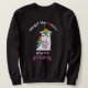 Now it's glittering fierce unicorn with rainbow ha sweatshirt