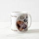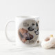 Eine klassische Tasse des weißen Kaffees, die einen Entwurf von 2 nowzad Rettung Hunden, Brin u. Kilo auf beiden Seiten von der Tasse kennzeichnet.
