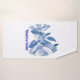 Un motif floral élégant et enchanteur, composé de trois roses bleues luxuriantes aux pétales finement dessinés et aux feuilles d'un bleu profond. La palette monochrome bleue crée une atmosphère sophistiquée et poétique, rehaussée par la légende en français « Nuance Bleue ». Idéal pour les amateurs de fleurs qui osent se démarquer.