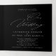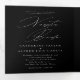 Feiern Sie Ihre Liebe mit unserer schwarzen Nuestra Boda English Spanish Bilingual Wedding Tri-Fold Einladung. Mit seinem eleganten Kalligrafiedesign und einer zeitlosen Schwarz-Weiß-Farbpalette bietet dieses dreiseitige Layout viel Platz, um Ihre Hochzeitsdetails auf Englisch und Spanisch zu teilen. Das Design enthält eine Fotovorlage, mit der Sie eine persönliche Touch mit einem hochgeschätzten Bild hinzufügen können. Diese individuell gestaltbare Einladung verbindet Eleganz und Praxisnähe und schafft so einen schönen Rahmen für Ihren besonderen Tag.