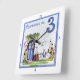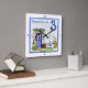 Dutch delft porcelain stil feature to complete any kitchen or bathroom design. A drawing of a house front door and parked bicycle, states the number 3 and welcome in French or Willkommen, to our house.