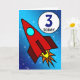 Helles rotes Raketenschiff, das durch den Weltraum fliegt, um Ihnen einen guten Geburtstag zu wünschen. Ändern Sie die Altersnummer auf der Vorderseite und fügen Sie Ihre eigene personalisierte Nachricht auf der Innenseite hinzu.