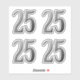 Vier Silber-Kontur-Aufkleber der Nummer 25 zum Geburtstag oder Jahrestag.