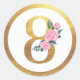 Nummer 8 Acht Rosenrosen, Blüten und Elegantes Gol Runder Aufkleber