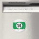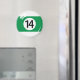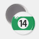Kühlschrankmagnet mit einer grünen und weißen Zahl vierzehn Billardkugel mit Reflektion. Perfekte Weihnachten oder Geburtstagsgeschenk für Billardspieler. Alle 16 Kugeln sind auf Untersetzer, Aufklebern, Magneten, Schlüsselanhängern und Ziergegenständen erhältlich.