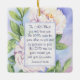 Inspirationsskriptur personalisierte Weihnachtsschmuck zeigt ein wunderschönes Blumenwasserfarbendesign mit rosa Blume und Grün auf blauem Hintergrund. Es enthält die Bibelversen Nr. 6 24-26: "Der Herr segne dich und behalte dich; der Herr lässt sein Gesicht auf dich scheinen und sei nett zu dir; der Herr wendet sein Gesicht zu dir und gibt dir Frieden." Personalisieren Sie den Rücken mit Namen und Datum oder die Details Ihrer Wahl.