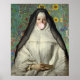 Pop-Kunst eines Vintagen Gemäldes, das mit einer Nonne vermischt wird, die einen rosa Kaugummi bläst. Nun blasen ein rosa Kaugummi.