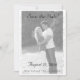 Design front features the photo you supply displayed in black and white against a white background. The semi-transparent effect helps to create the appearance of fine elegance. Heading, date, names and city are all displayed in an elegant black Nuptial font. Photo is bordered with a flourish.