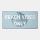 Theke zum Thema Hütte am Strand mit individualisierbarem Text "nur für Strandvibes" in bedrücktem, weißem Schriftart, blauem Hintergrund und Vintager blauer Muschelzeichnung