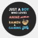 Nur ein Junge, der Anime Ramen und Gaming Spaß Lie Runder Aufkleber