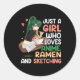 Nur ein Mädchen, das Anime-Ramen und Sketching-Ja Runder Aufkleber