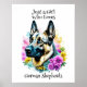 Niedlicher deutscher Schäferhund umgeben von rosa und gelben Blumen. Ai Aquarellkunst. Niedliches Geschenk für deutsche Hirtenbesitzer. Nur ein Mädchen, das deutsche Hirten Liebe!