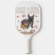 Nur ein Mädchen, das französischen Bulldoggen Lieb Pickleball Schläger