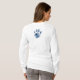 Niedliche, graue, mit rosa und blauen Blumen umgebene Blinde Katze. Katzenpfoten auf der Rückseite drucken.