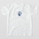 Niedliche, graue, mit rosa und blauen Blumen umgebene Blinde Katze. Katzenpfoten auf der Rückseite drucken.