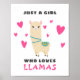 Ein wunderschöner Lama, der in traditionellen Holzmöbeln und Sattel dekoriert ist. Im Text steht: "Nur ein Mädchen, das Llamas Liebe".