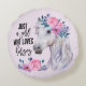 Hübsches rosa, rundes Kissen mit Pferd, Blume und die Aussage "Just a Girl Who Lieben Horses"