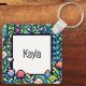 Niedliche, personalisierte Schlüsselkette für alle Mädchen, die Pflanze Lieben. Niedliche ai Grafik in einem Pixel-Videospiel-Stil. Mädchen, die ein Tränken halten, können von vielen Pflanze umgeben sein.