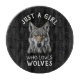 Ein wunderschönes Wolfbild mit Text, der lautet: "Nur ein Mädchen, das Wölfe Liebe"