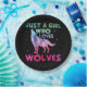 Nur ein Mädchen, das Wölfe Lieben Wasserfarbe Pappteller