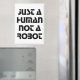 Lass allen, mit diesem Ausdruck, dass du "Just a Human Not a Robot" bist, mit diesem schwarz-weißen Knopf. Es hat eine moderne Typografie mit einem geometrischen Schriftart. Die Hintergrundfarbe kann im Entwurfswerkzeug geändert werden.