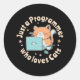 Nur ein Programmierer, der Katzen Liebe Runder Aufkleber